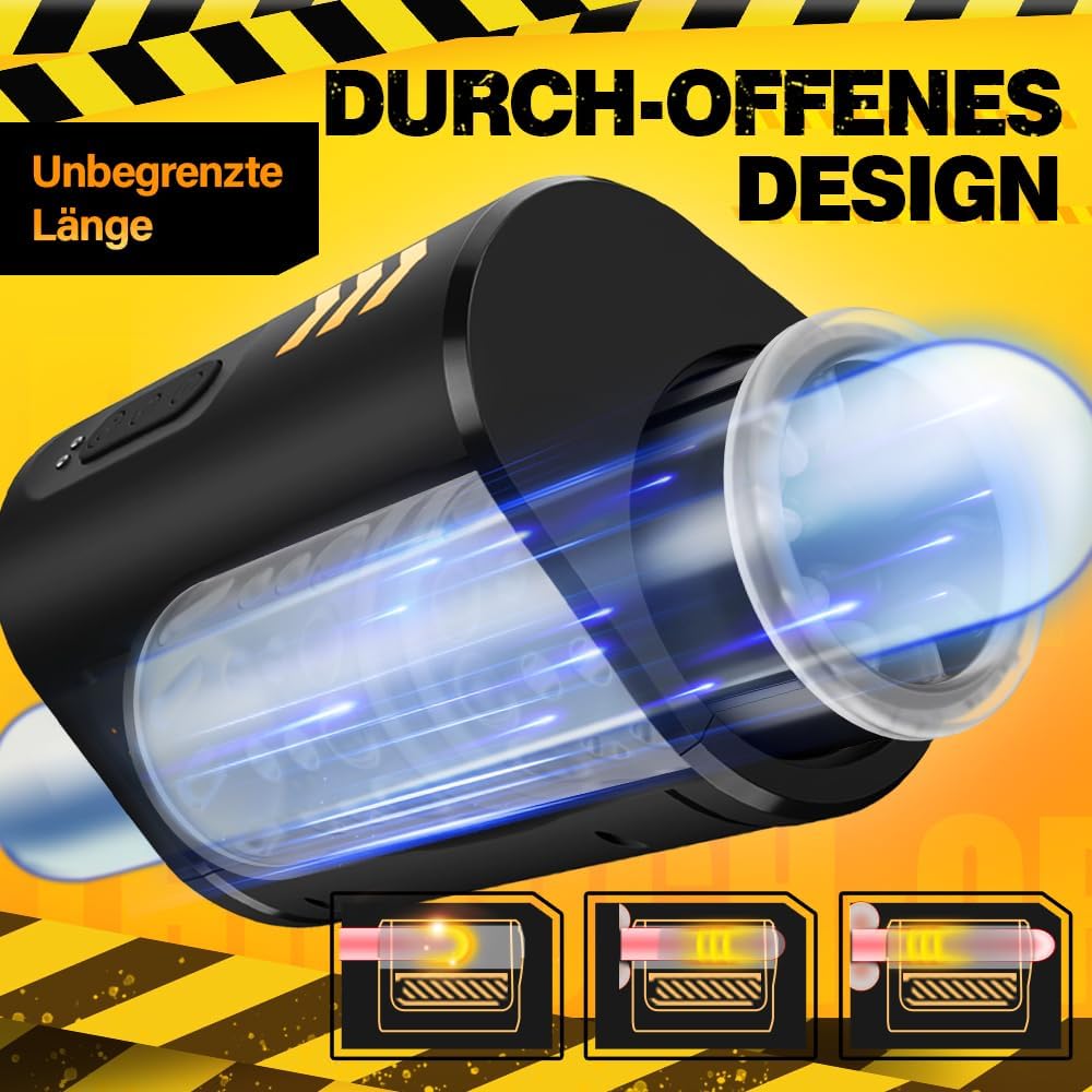 2in1 Elektrischer Masturbator Cup mit durchgehender Öffnung, rotierend und stoßend